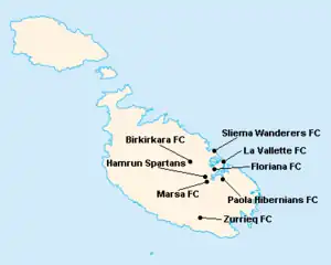 L'île de Malte étant relativement petite, les clubs évoluent tous au stade National Ta'Qali (17 400 places). Certain cependant ont leur propre enceinte qu'ils peuvent éventuellement utiliser.