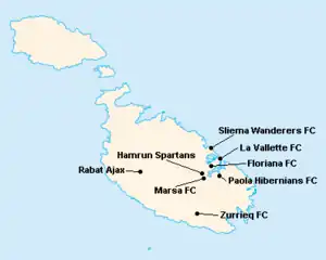 L'île de Malte étant relativement petite, les clubs évoluent tous au stade National Ta'Qali (17 400 places). Certain cependant ont leur propre enceinte qu'ils peuvent éventuellement utiliser.