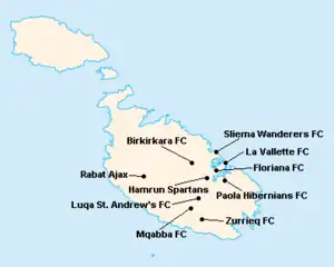 L'île de Malte étant relativement petite, les clubs évoluent tous au stade National Ta'Qali (17 400 places). Certain cependant ont leur propre enceinte qu'ils peuvent éventuellement utiliser.