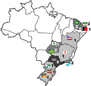 * Stade provisoire situé à Mesquita en attendant les travaux en cours au Marrentão pour lui permettre d'accueillir des matches de série B.