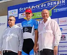 Gert Jõeäär (au centre) vêtu de son maillot de champion national lors du Grand Prix de Denain 2016
