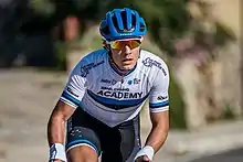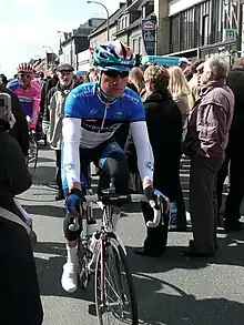 Erki Pütsep vêtu de son maillot de champion national lors du Grand Prix E3 2008