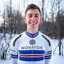 Ingvar Ómarsson, recordman du nombre de titres de champion d'Islande sur route, vêtu de son maillot de champion en 2021