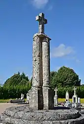 - Belle croix hosannière au cimetière. C'est une croix supportée par un fut constitué d'un faisceau de quatre colonnes cylindriques engagées dans un noyau central. Chacune de ces colonnes repose sur une base circulaire moulurée, qui a pour assise une base carrée. La croix hosannière tire son nom de l'hébreu Hosanna, premier mot d'un hymne chantée le jour des Rameaux. Les villageois se rendaient en procession jusqu'au cimetière ce jour-là. Une fois arrivés au pied de la croix, ils entonnaient l'Hosanna.
