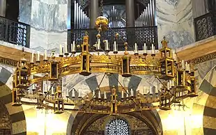 Le lustre, suspendu à environ quatre mètres au-dessus du sol en marbre, est composé de huit segments circulaires et s'adapte ainsi à la forme octogonale de la chapelle palatine. La couronne du lustre symbolise le mur de la Jérusalem céleste. Cette muraille stylisée contient huit grandes et huit petites lanternes en forme de tour, disposées symétriquement et symbolisant les portes de la ville. En raison de la structure octogonale du bâtiment environnant, le lustre n'est pas doté de douze tours-lanternes, comme dans la représentation traditionnelle de la Jérusalem céleste.