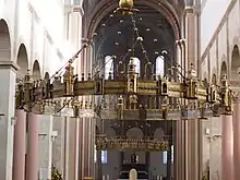 Au centre, une grande lampe est suspendue à une corde. Le lustre, aussi appelé corona (couronne) ou lustre circulaire, était accroché dans la nef jusqu'en 1944, date à laquelle il fut enlevé pour la protéger des bombardements. Il était suspendu au-dessus de l'autel dans le centre de la nef depuis la réouverture de la cathédrale en 1960 jusqu'au début des travaux de restauration de la cathédrale en 2010[1].