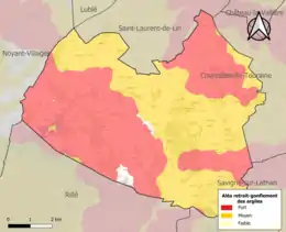 Le retrait-gonflement des sols argileux est susceptible d'engendrer des dommages importants aux bâtiments en cas d’alternance de périodes de sécheresse et de pluie. 98,9 % de la superficie communale est en aléa moyen ou fort (90,2 % au niveau départemental et 48,5 % au niveau national). Sur les 398 bâtiments dénombrés sur la commune en 2019, 386 sont en aléa moyen ou fort, soit 97 %, à comparer aux 91 % au niveau départemental et 54 % au niveau national. Une cartographie de l'exposition du territoire national au retrait gonflement des sols argileux est disponible sur le site du BRGM[22],[23].