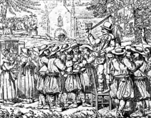 Cependant, on constate que, dans un contexte d'indifférence de la part des classes dominantes, le nombre de témoignages de chansons populaires est très restreint : seule la mémoire populaire aura été le gardien de ce répertoire. Une forme de dédain pour un domaine peu prisé par les autorités religieuses, est aussi une des origines du peu de traces écrites, allant de la représentation des musiciens populaires en animaux satiriques, aux mises en garde du Père Maunoir contre les nuitées et les veillées, qui conduisent par la suite à assimiler au diable les aubergistes, les sonneurs, les danseurs, etc[d 4].