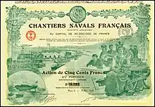 Les Chantiers navals français sont fondés en 1918 par le gouvernement français dans le cadre de l'effort de guerre. La France doit construire de nombreux cargos pour assurer son approvisionnement depuis ses colonies. Avec ses six cales en épis le long d'un bassin relié au canal de Caen à la mer[1] sur une surface de 50 hectares, les CNF permettent de construire des navires de 165 mètres de long.