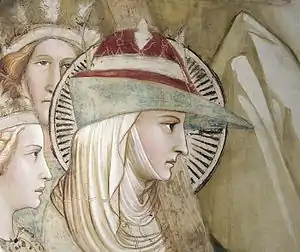 Sainte Hélène avec un chapeau à bec. Vers 1380