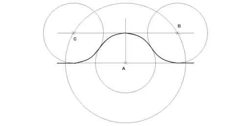 Tracer le quatrième cercle au point C. Le trait noir plus épais mets en évidence le tracé du chapeau de gendarme.