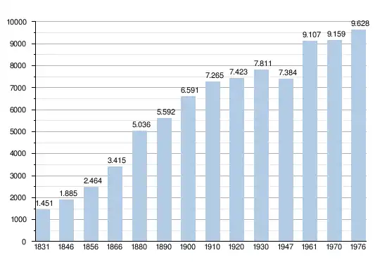 - Source: DGS , de 1831 à 1981=recensements population; à partir de 1990 = nombre d'habitants chaque 1 janvier