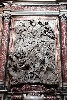 Les reliefs sculpturaux de Giovan Battista Foggini ont une importance particulière dans l'histoire de l'art florentin car ce sont les premiers exemples de sculpture baroque dans la ville, conçus selon le style déjà très populaire à Rome (où Foggini a été formé à la demande du grand-duc Cosme III), mais qui, à Florence, a du mal à s'enraciner en raison de l'influence durable du maniérisme de Jean Bologne.