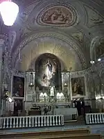 Le sanctuaire et les murs sont faits de marbre blanc avec des incrustations d'or. Le plafond, orné par les huit scènes peintes par François-Édouard Meloche entre 1886 et 1891, illustre la vie de la Vierge[5]. En 1908, la voûte a été redécorée par l'artiste Delphis-Adolphe Beaulieu par un procédé de marouflage, une technique qui permet de conserver de manière presque intacte le décor d'origine[6]. Les fresques de Meloche ont d'ailleurs été remises en valeur en 1998.