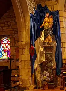 Au-dessus de l’autel, se trouvent deux statues. La première, du XVIIIe s,. représente la Vierge à l'Enfant, dite Notre-Dame-de-la-Clarté tandis que la seconde, du XVIIe siècle, est celle de Saint Vennec en abbé.