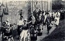 Le peintre Jules Breton (1827-1906), qui séjourne à Douarnenez depuis 1865, assiste au pardon de l'été 1890. Il a choisi de représenter le moment où, après les vêpres, la grande procession fait le tour de la chapelle monumentale, entourée de cordons de cire, pour y rentrer. Des mendiants se sont rassemblés le long du parcours au milieu des tombes. Les miraculés marchent en tête[3].