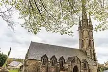 En effet, le clocher était originellement étayé à sa gauche par un arc triomphal, supprimé au cours des années 1830 et qui, donnant accès au cimetière, joignait la maison Ar Presbytal. Au sud, le clocher était mitoyen de la maison du Gouverneur qui disparut dès 1825. La destruction progressive de son environnement architectural compromis la stabilité de l'ouvrage. Ébranlées par une tempête le [7], la flèche et la partie supérieure de la tour durent finalement être démontées de 1837 à 1841. Le clocher ne fut reconstruit qu'à partir de 1881 par l'entrepreneur quimperois Jean-Louis Le Naour, après que le corps de l'édifice ait été restauré de 1875 à 1877[8].