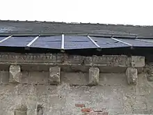 Le gouttereau de la façade nord, la plus endommagée, avec ses modillons, moins ouvragés que sur la façade sud