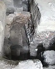 Les indices archéologiques en témoignent : l'autel ainsi retrouvé, qui semble avoir toujours été situé à cet endroit dans le temps, auquel s'ajoutent les bases de deux colonnes bien antérieures au XIIe siècle, ainsi qu'une trace attestant du début du chevet dont la chapelle est amputée, sans oublier une très surprenante statue d'évêque de 90 cm de haut, visiblement enterrée là rituellement au XVe siècle, couchée sur le dos[35],[36], amputée de sa tête et des mains [37]; mais finalement, peu de traces sur l'usage religieux du site, si ce n'est sa fonction funéraire la plus récente : quarante sépultures ont ainsi été dénombrées, probablement une même famille de notables, adultes et enfants, enterrés soigneusement dans des linceuls[38], qui pourraient dater du XVIe siècle, sans que l'on sache encore de quelle famille il s'agit, du fait du manque d'indices[note 7], malgré quelques suggestions[note 8]. Petit aléa anecdotique : la photo grand format qui avait été faite de l'un des squelettes a rapidement été volée[17].