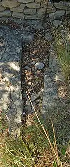 À l'arrière de l'ermitage, on trouve une annexe basse édifiée en moellons plus gros assemblés en appareil irrégulier, au-dessus de laquelle on aperçoit une baie cintrée à encadrement de pierre de taille.