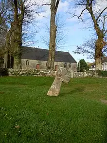 Au sud de l'édifice, un placître, planté de châtaigniers et de frênes, abrite un grand calvaire, bâti à la fin du XIXe siècle, et deux croix archaïques taillées dans un granit à gros grains[4].