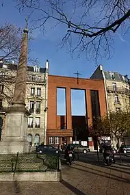 On accède à la chapelle, en retrait de la voirie, après avoir descendu un escalier. En 1953, l'architecte Raymond Busse fait précéder l'édifice par une nouvelle construction, une façade-clocher alignée sur les immeubles voisins de la rue d'Auteuil[6].