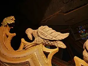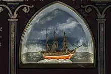 - À droite un bateau à trois ponts, en os ou ivoire, également classé[9] à titre d'objet par les monuments Historiques le 29 janvier 2004.