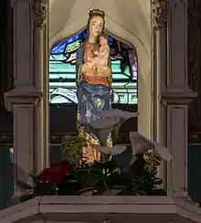 A gauche du sanctuaire il y a une statue en pierre, qui mesure 0,55 m de hauteur, aussi en forme de Vierge à l'Enfant. Elle date du XVIe siècle et est classée[7] par les Monuments Historiques à titre d'objet le 20 novembre 1908.