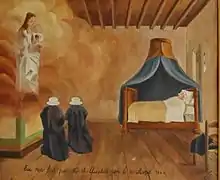 - Quatrième ex-voto : Peinture sur toile, à gauche du tableau la Vierge de Condat, à droite une religieuse étendue dans un lit, puis deux autres religieuses en prières. Inscription : « Ex-voto fait par Mme Th. Élisabeth Yon, le 10 avril 1844 ». (Élisabeth Yon fonda La Miséricorde de Libourne, une maison de Charité pour femmes en détresse, le 2 février 1837 et qui est toujours en activité).