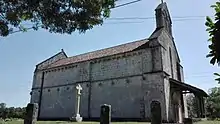 À l'extérieur, sur la façade sud de l'église, près de la façade occidentale, à environ 1,80 m du sol, se trouvent les vestiges de deux cadrans canoniaux gravés dans la pierre.