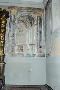 Retable de saint Benoit et statue de saint Venance, chapelle latérale.