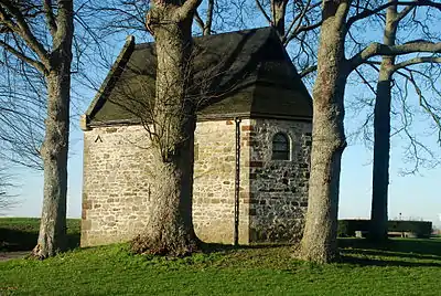 Abritée sous une couronne de tilleuls[4], elle se situe au point culminant d'un plateau[1],[2].
