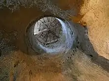 Cette chapelle troglodytique était à l’origine une ancienne carrière d'extraction de falun datant du XIIIe siècle ; en levant les yeux on peut apercevoir au sommet la grande ouverture qui est un ancien puits d'extraction. Il permettait de monter la roche à la surface grâce à des treuils. Les trous en ligne situés en dessous sont les trous d'échafaudage[2].