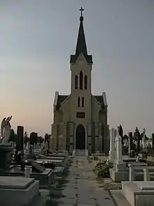 - La chapelle Vuković-Marton a été construite en 1901 selon un projet de l'architecte Géza Kocka ; elle est caractéristique du style néo-Renaissance auquel se mêlent des éléments Sécession. Elle est édifiée sur une base carrée et est dominée par un dôme hexagonal. Elle est constituée de briques et est dotée de contreforts de style Sécession en pierre artificielle[2].