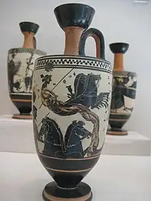 Le char solaire est souvent représenté sous la forme d'un quadrige dans la sculpture ou la céramique grecque antique.