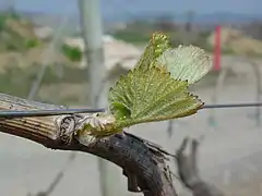 - Feuilles adultes orbiculaires, entières ou à 5 lobes, sinus pétiolaire ouvert à fond souvent limité par la nervure près du point pétiolaire (caractéristique majeure pour le distinguer du pinot blanc B), dents courtes rectilignes et un limbe bullé.