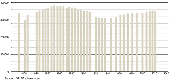 - Tandis que la population totale s'établit à 362 528 habitants, cette dernière donnée est prise en compte par les administrations, notamment en vue du calcul de la DGF des communes lors de l'élaboration annuelle du budget. Sur ce, consulter notamment la Base A.S.P.I.C. des départements / Site ASPIC des départements, intercommunalités, communes.