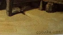 Nombre de ses toiles représentent les Chouans, telles L'Embuscade, ou des scènes de culte catholique comme Procession autour d'une croix en pierre. Le fait que son œuvre soit fortement marquée par la réaction à la République et le cléricalisme tient certainement de ses origines nobles, mais aussi de l'influence de ses mécènes. Il signe habituellement ses œuvres du simple nom de « Coëssin ».