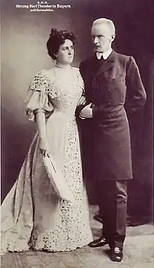 - Élisabeth (née le à Possenhofen en Bavière et morte le à Laeken (Bruxelles, Belgique), qui épouse à Munich, le le prince Albert de Belgique (Albert Ier de Belgique) (né à Bruxelles le et mort dans un accident d'escalade à Marche-les-Dames le ), et devient Reine des Belges en 1909, dont postérité ;