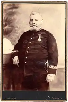 Le , il embarque sur le Comorin à Tourane. C'est son premier « congé administratif »[Notes 30]. Lorsqu'il débarque à Toulon, le , presque cinq ans se sont écoulés depuis son départ. Prévu pour une durée de six mois, jusqu'au inclus, avec « solde de présence sur le pied d'Europe », soit 5000 Frs , « pour en jouir à Bastia (Corse) », ce congé est prolongé[Notes 31]. Il ne retourne en Indochine qu'un an plus tard puisque, le , il embarque sur le Cachar, à Marseille, et débarque, à Haïphong, le . Sa photographie, dans le Fond Ozanam, date donc de ce séjour (prise à Bastia, il porte sa décoration).