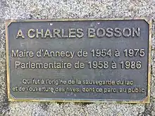- Charles Bosson est élu maire d'Annecy 1954 jusqu'à sa démission en 1975, date à laquelle il est remplacé par André Fumex.