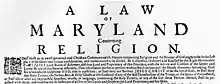 En 1649, l'Assemblée générale du Maryland, la législature coloniale vieille de dix ans, adopte le Maryland Toleration Act, également connu sous le nom de « Act Concerning Religion, une loi de tolérance religieuse pour les chrétiens trinitaires ». Adoptée le 21 septembre 1649 par l'Assemblée de la colonie du Maryland, c'est la première loi exigeant la tolérance religieuse dans les colonies britanniques d'Amérique du Nord. La famille Calvert demande l'adoption de la loi pour protéger les catholiques et les autres chrétiens trinitaires qui ne se conforment pas à l'Église d'Angleterre établie. La tolérance religieuse dure environ 40 ans jusqu'à ce qu'elle soit révoquée lors de la Révolution protestante de 1689. De 1689 à 1776, le Maryland est officiellement anglican.