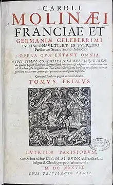 Charles Dumoulin, né à Paris en 1500, mort en 1566 est un jurisconsulte français.