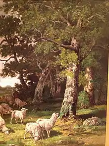 - Juiz de Fora (Brésil), Mariano Procópio Museum (en), Troupeau de moutons dans une forêt.