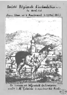 L'intégration d'un nouveau lama a contaminé tout le troupeau avec une maladie mortelle, la carache[20].L'extinction" du troupeau a mis fin à l'étude de physiologie animale sur cinq années. Elle a quand même démontré que l'acclimatation des lamas dans les Vosges est réussie[21] comme bêtes de somme, bêtes laitières, viandes de boucherie , lainage[22] ainsi qu'au transport de personnes de moins de 50 kg[23], au point de susciter une acclimatation dans les Pyrénées[24].