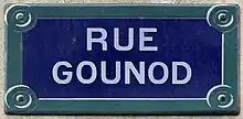 De nombreuses grandes villes de France (rue Gounod à Paris[29], Bordeaux, Toulouse, Nantes, Grenoble, Montpellier, Tourcoing) ont une rue à son nom ainsi que la rue Gounod de Saint-Cloud, ville où le compositeur a passé ses dernières années.