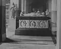 Son tombeau, sculpté par Jehan Moné[6], est conservé au musée de Douai, tout comme le gisant du monument funéraire son fils Charles II de Lalaing. Il porte l'inscription suivante : « Cy gist Monseigneur Charles, conte de Lalaing, baron d'Escornaix, seigneur de Brakele, de Saint-Aubin en Douay, etc. En son temps fut conseiller et chambellan de très haut et très puissant prinches l'empereur Maximilien, du roy Philippe de Castille et de l'empereur Charles Cinquième de ce nom, roy des Espangnes, etc. Chevalier de l'Ordre de la Thoyson d'or, capitaine et gouverneur de la ville et chasteau d'Audenarde, fist plusieurs voyages, tant en guerre qu'en paix, au service des prinches dessusditz, eubt à femme dame Jacqueline de Luxembourg, eurent plusieurs beaux enfans, et ayant toute sa vie vescut catholiquement et en vray amateur de noblesse trespassa chevalier sans reproche en l'eage de chincquante noeuf ans audit chasteau d'Audenarde, le XVII jour de juillet MCCCCCXXV : priez Dieu pour son ame »