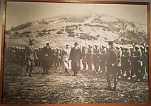 Général Regnault, Eleftherios Venizelos et Pavlos Koundouriotis passant en revue l'armée grecque sur le front macédonien, 23 avril 1917. Musée Benaki, Athènes.