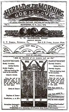 En 1876, Russell contacte Nelson Barbour, un prêcheur adventiste indépendant, propriétaire du journal Herald of the Morning. Il lui offre son soutien financier pour publier un livre de 196 pages, Three Worlds, and the Harvest of This World. (Traduction littérale : Les trois mondes, et la moisson de ce monde). Dans ce dernier, Russell reprend les théories annonçant la fin des temps : le Christ est de retour de façon invisible depuis 1874[3], et la destruction de toutes les institutions de ce monde suivie de l'établissement du Royaume de Dieu, est prévue pour 1914[4],[5]. En collaboration avec lui, il annonce aussi l'imminence du Retour du peuple juif sur sa terre.