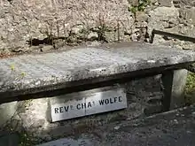 Charles Wolfe (1791 - 1823) était un poète irlandais. Après des études au Trinity College de Dublin entre 1809 et 1814, il a été ordonné prêtre de l'Église d'Irlande en 1817. Il est resté célèbre pour son poème L'enterrement de Sir John Moore après La Corogne (The Burial of Sir John Moore after Corunna), écrit en 1816 et inclus dans de nombreuses anthologies au XIXe siècle et au début du XXe siècle. Il est enterré au "Old Church cemetery" de Cobh.